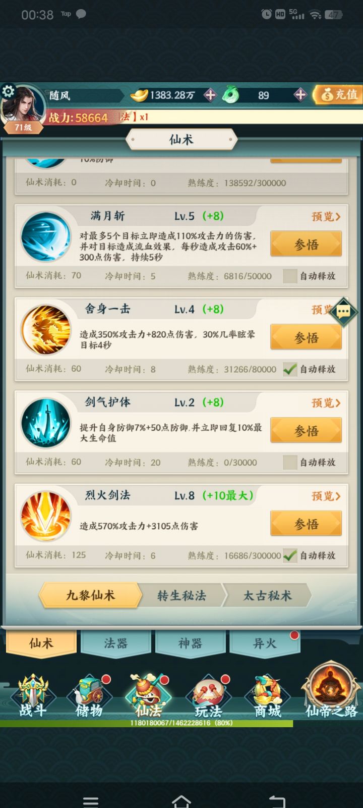 游戏中有三大职业:九黎、御灵和无极*无极技能*上清诀:增加攻击和道术和法力吸取,是被动技能,直接增加到属性面板。妙手回春:5级后可治疗多个单位,无极越级刷boss核心技能。灵魂火符:无极主力单体技能,技能可以无视部分防御力,0CD受攻速影响。幽冥毒雾:无极主力群体技能,还附带大量破防效果。召唤术:无极核心技能,5级后召唤两只宠物,10-19级召唤神兽,20级白虎打2个目标,攻击距离均为