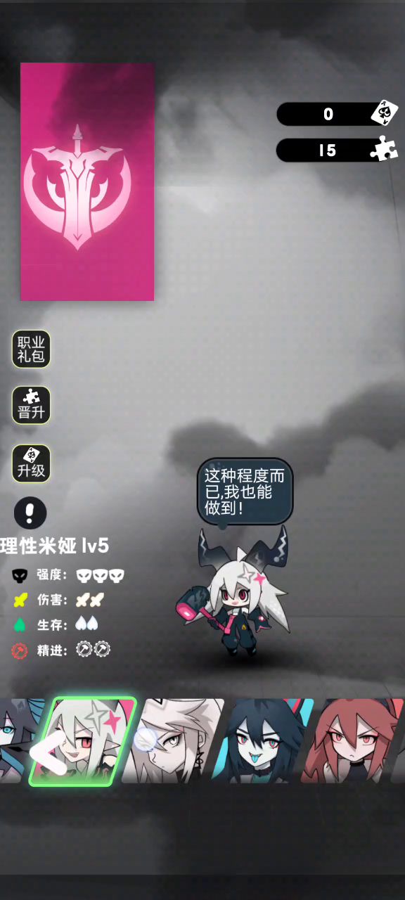 虽然是单机小游戏但是画风不拉垮 ,q版人物治愈风格 小魔女人物 有恶魔角和兽耳太正常,背景色偏暗 突出魔女主题 ,英雄角色做的不错 就是太少