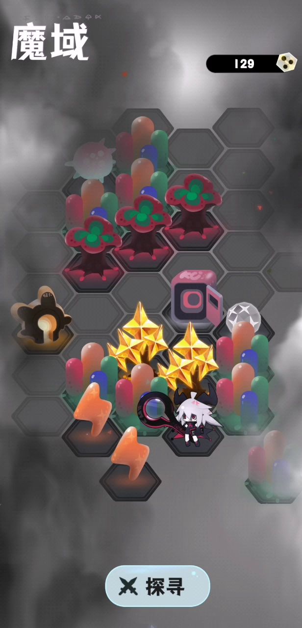 虽然是单机小游戏但是画风不拉垮 ,q版人物治愈风格 小魔女人物 有恶魔角和兽耳太正常,背景色偏暗 突出魔女主题 ,英雄角色做的不错 就是太少