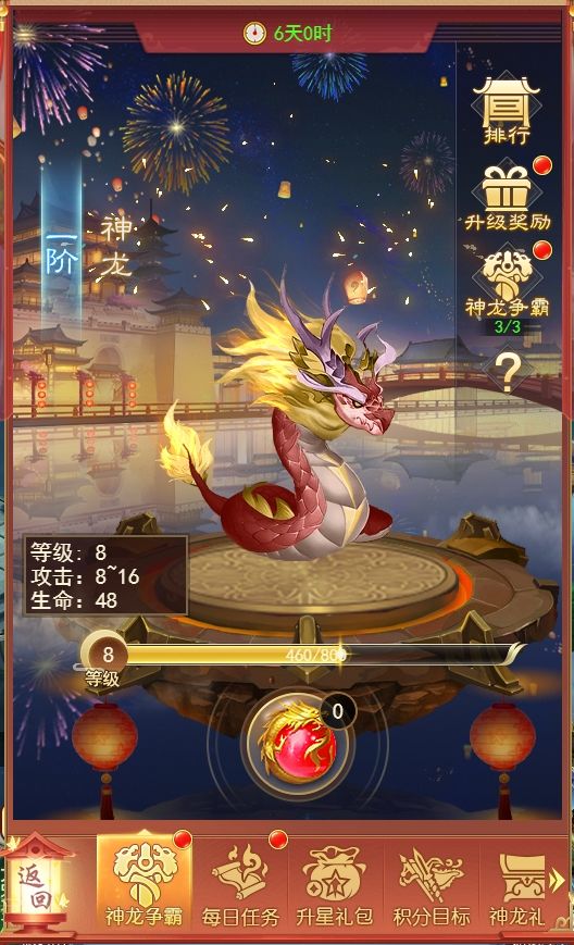 尊敬的仙友:盛世华诞,举国欢庆,华夏盛事,盛大开启。 金秋十月的国庆假期即将到来仙界举行了一场盛大隆重的欢庆活动国庆活动即将限时开启!众多豪礼等您来拿!快和《凡人神将传》一起纵览祖国山河的美景吧~ 活动名称:金秋赠礼(开服≥22天开启) 活动时间:9月28日-10月04日 活动内容:宗门共同饲养神龙进行神龙比拼,提升神龙等级可获得大量道具,进阶神龙更可获得“秋日福袋”与UR神将召唤符碎片。 活动名