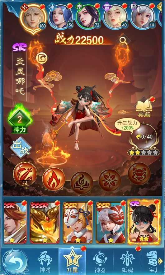 很多仙友在闯关升仙的时候会遇到那么一个问题——等级和战力到了某一关就会卡住,主线任务很难完成,而接下来我会给大家介绍提升战力最最最重要的一个点,那就是《凡人神将传》中的神将系统。 四.神将 神将对仙友的战力提升无疑是最大的,无论是主线闯关升级,和玩家PVP对战,神将的战力对玩家的作用一般都是最大的,仙友们最先接触的也一定是神将,神将的跨度非常大,从最初级的SR到最高级的SP,每一等级的神将都对仙友