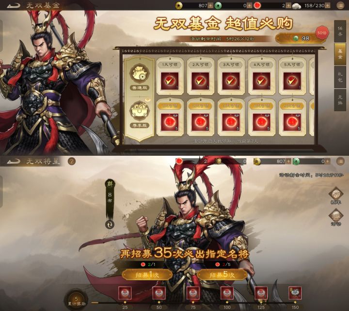 游戏为平衡平民玩家和氪金玩家的体验做出了不同的游戏设计,每日都持续奉上自选5星武将,丰富的福利内容能帮助新人前期迅速组成强力队伍,帮助大家迅速开荒,无论是平民玩家还是对战力有追求的玩家都能有相对良好的游戏体验。