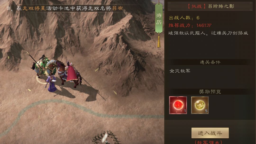 吕玲绮的五维为:武力85 智力40 统率85 毅力60 运气60 天赋技能:造成伤害前,施加随机减益两回合 兵种兵法:镇山-暴击伤害+15%,平原适应性,不适合建筑物,山地不受影响 大招: 弑刹汲髓-满级效果 临时50%生命偷取、无视格挡、闪避、2格范围285%近战兵刃伤害 攻击方式:九宫格 核心技能 战争践踏- 冲撞直线3格第一个敌人115%兵刃伤害,随后对九宫格造成35%兵刃伤害,所有造成伤