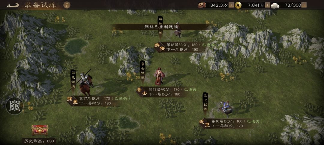 #新三国志曹操传创作者征集 《新三国志曹操传》装备试炼终极攻略:横扫六十关的神兵秘策 装备试炼是《新三国志曹操传》中获取武将装备的核心玩法,分为强袭、近卫、游侠、奇士四种挑战模式,每种模式包含21关,共48关。通关数量越多,获得高品质装备的概率越高,是提升武将战力的关键途径。 各模式通关要点 强袭试炼 - 上阵限制:仅可使用【强袭】类兵种武将,如吕布、关羽、吕玲绮、张飞、孙策等。