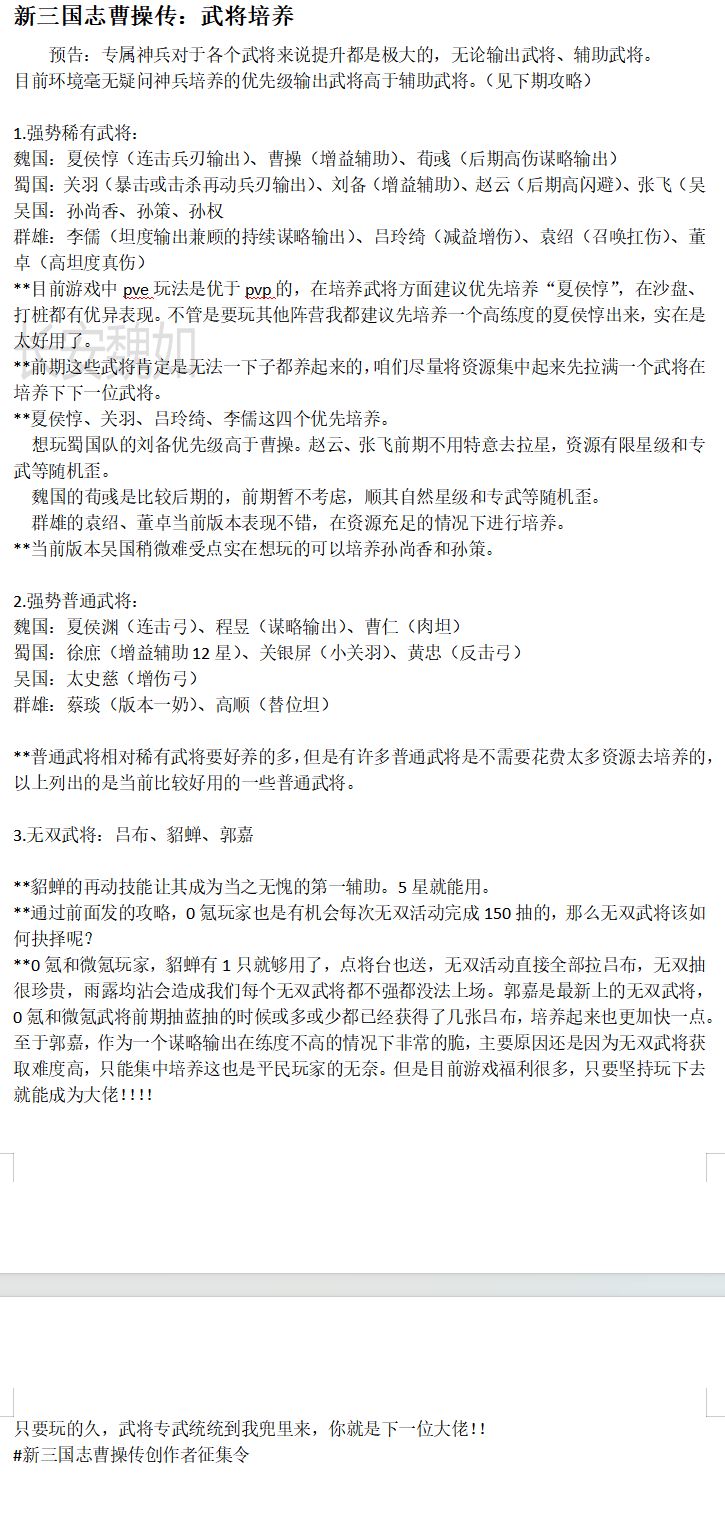 新手必看:一篇文章玩转新三曹之武将培养
