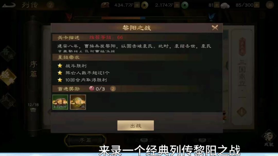 经典列传-黎阳之战特殊成就攻略 视频出自b站光辉丶龙神