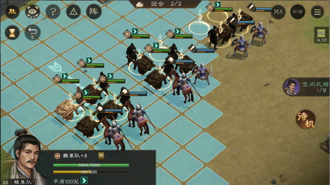 #新三国志曹操传攻略测评 #新三国志曹操传 #发现好游戏 #游戏攻略 #游戏日常 #今天游戏圈发生了啥 南华二期5-1之一张一弓一回 推荐武将中三个稀有,不考虑,两个普卡,我们只需要一个张绣,星级无所谓,兵书有就行。然后需要一个任意拥有九宫aoe或者更大的高练度武将。我选择了夏侯渊,因为第一个月有培养弓手的活动,选黄忠,程昱等其他的也可以。 第一步曹操上buff 第二步张绣放技能(这个输出一定够