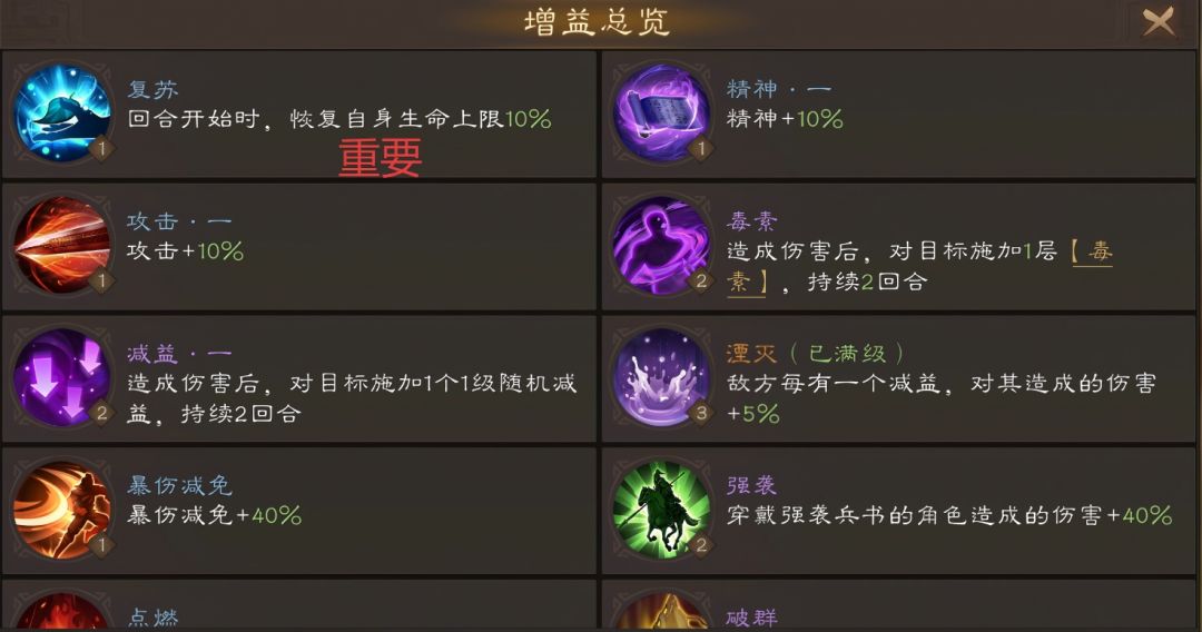 董卓机制1:对血量百分比低于自身的单位,造成伤害+200%。 针对这点,需要选择保命加回血的buff。回合开始后,回复自身生命上限10%/每场战斗受到致命伤害前,回复100%生命(一次)/吸血buff 董卓机制2:造成伤害后,对目标施加2层流血,2层毒素,持续2回合。 针对这点,需要驱散buff,回合开始后,清除自身2个减益buff。不建议上能驱散的英雄,缺少一个输出位得不偿失。 董卓机制3:高伤
