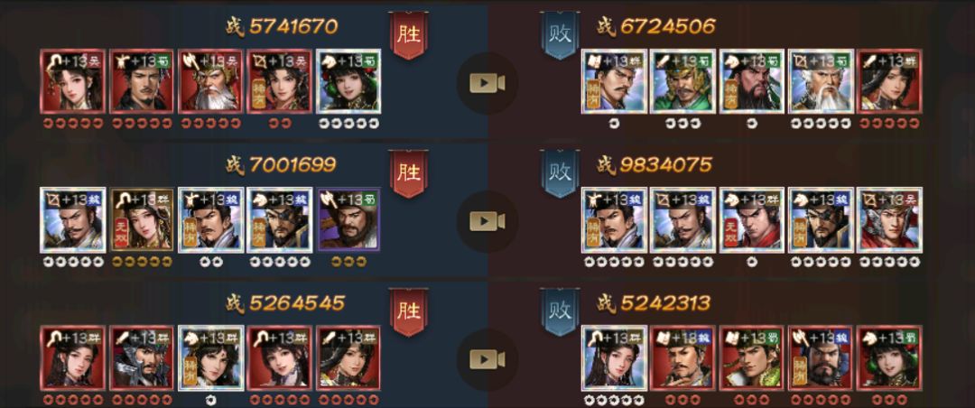 #新三国志曹操传 #新三国志曹操传军机品鉴团 #新三国志曹操传军机品鉴 #新三国志曹操传军机 前言:由于号主太非,玩了4天主力才2星红将,可以将就着参考。具体阵容看抽卡情况来定,我的两个香香都是低保给的。 个人见解不喜勿喷,图1是行动顺序,图2是站位顺序,图3-图10是pvp战绩。只要和对面主c差距不大的,基本都能打。 1,克敌演武/克敌争霸模式 推荐3吴+2功能辅助 思路:利用吴国灼烧特性来消