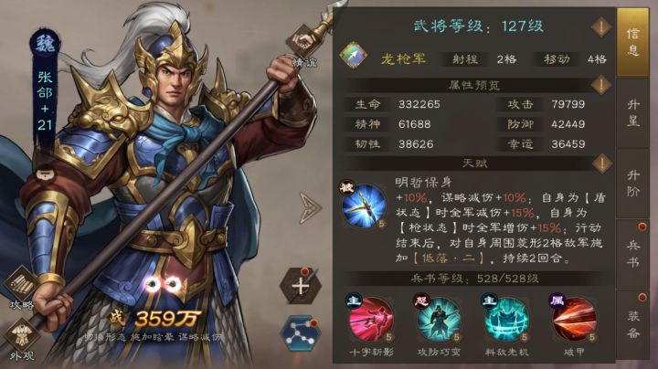 #新三国志曹操传创作者激励2026 #新三国志曹操传攻略 #新三国志曹操传新春打卡 新稀有张郃在三曹里是个能打能抗、能切换形态的全能选手。他的核心玩法就是通过切换“盾牌模式”和“长枪模式”,来给全队加 buff 或者减伤,同时自己也能控制敌人。被动天赋:明哲保身这个天赋让张郃天生就比较硬:基础硬气:永久增加 20% 韧性(就是更抗揍,不容易被暴击或控制)和 20% 谋略减伤(法师打他伤