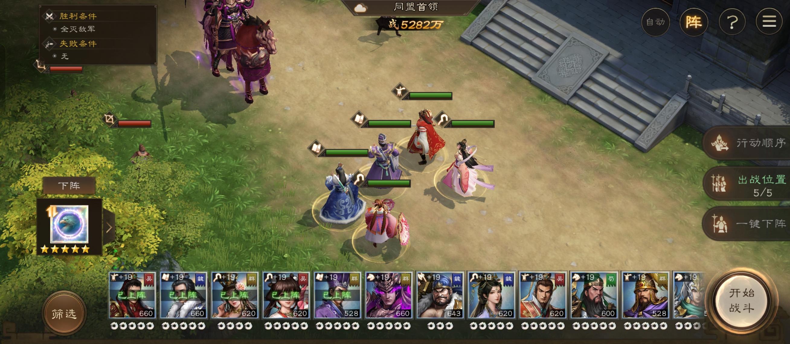 前提要有一匹再动马给关二爷能三动,袁绍招兵能三格,太+公孙4格,蝉再动夏侯五格,过关