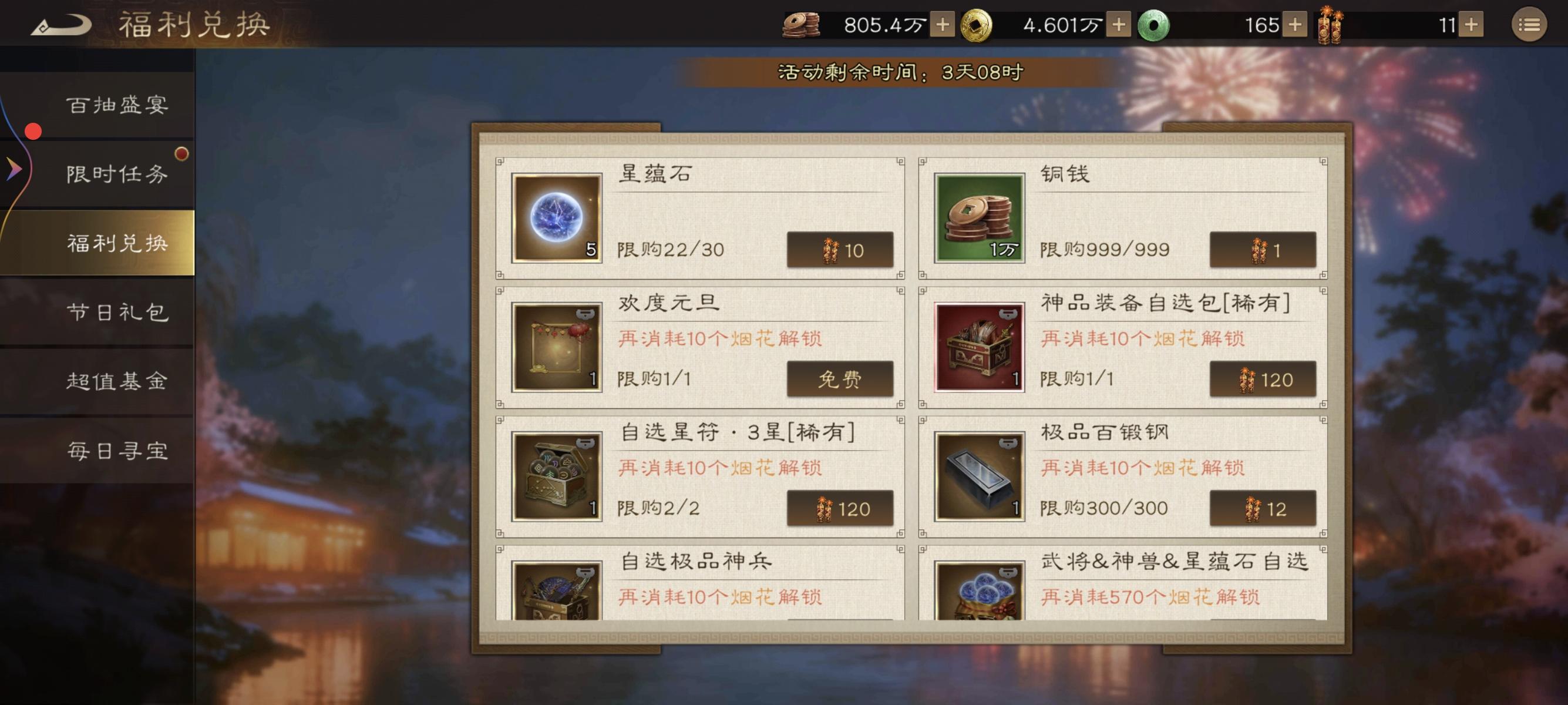 新三曹半周年福利!0氪玩家烟花兑换攻略