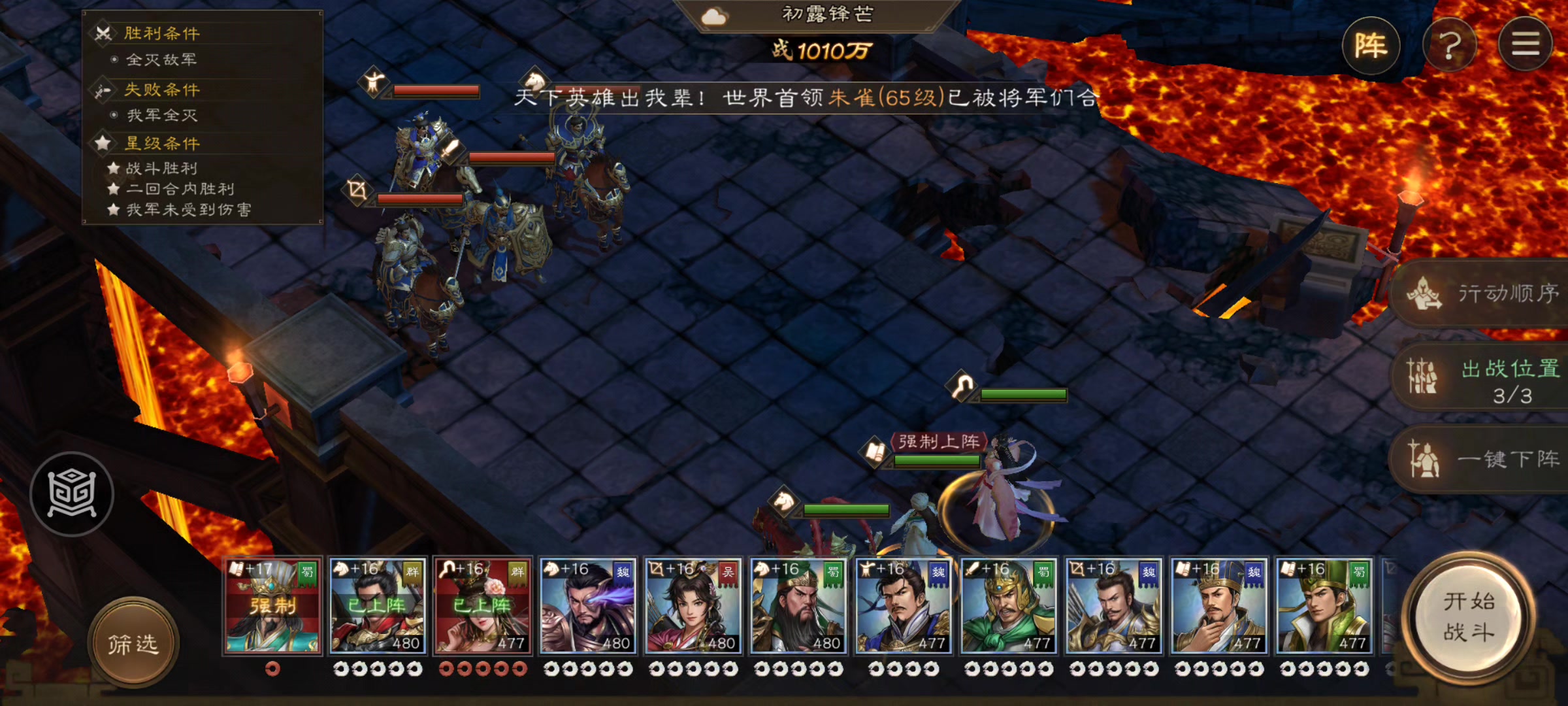 #新三国志曹操传创作者征集令 #新三曹无双诸葛亮 这关敌人属性不高,需要注意的是身上有两个减伤50%的buff,诸葛第一个行动吹风把buff清了就可以打了,我用的吕布加貂蝉来结束。