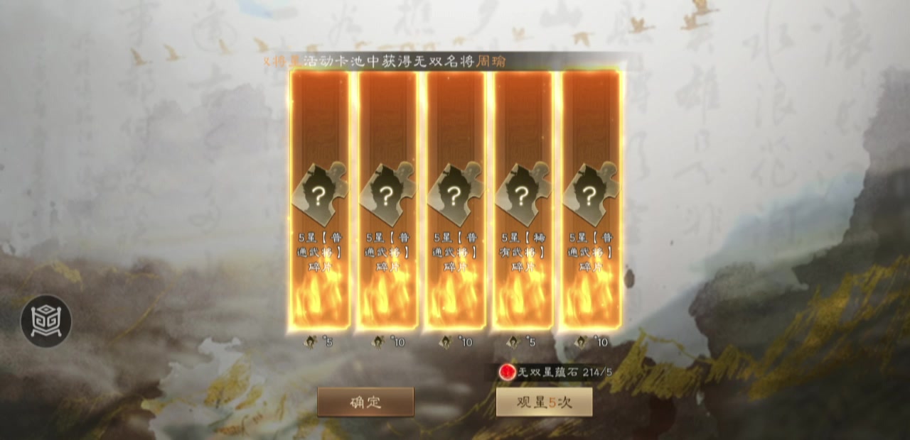 至今为止抽无双最欧的一次,250抽就抽到了8个,之前都是300抽才给8个,离完全体又快了一步,等几天基金凑300稳稳哒~! 正式版本周瑜登场又加强了一波,核心伤害如神兵的烈焰现在改成不可免疫了,就这个核心伤害,可被免疫和不可被免疫差距可谓云泥之别,最终终于不可别免疫了,就不会被甄姬和日日星符所针对,不枉这么多人期待火神,大都督的出现吴国队即将走向巅峰,无论是作为吴国队的核心,还是打中午12点的玄