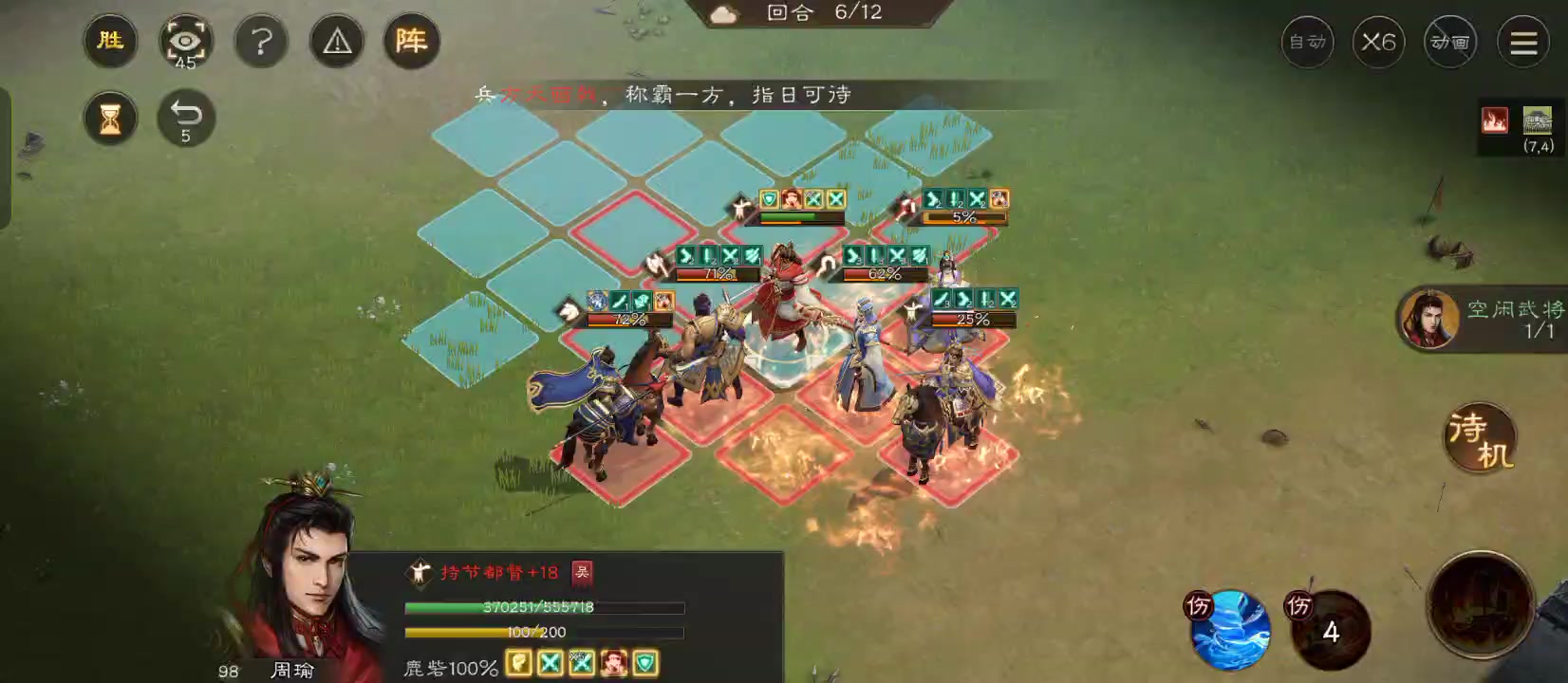 #新三国志曹操传创作者征集令 由于上班摸鱼录制的视频 游戏声音都没有开 没办法边讲解 只能通过文字方式来讲讲我的思路 利用刘备大招和二技能回血一技能也可以加伤害 貂蝉也可以每回合开始加治疗的方式来保证周瑜的生存 我没有小乔 所以选了老的高练度武将来过 第一个回合 周瑜开火🔥烧 貂蝉给再动周瑜 刘备开buff 第二回合 刘备先开大 有畜力加30%伤害效果 貂蝉开魅惑 由于有貂蝉的再动 周瑜二回合就