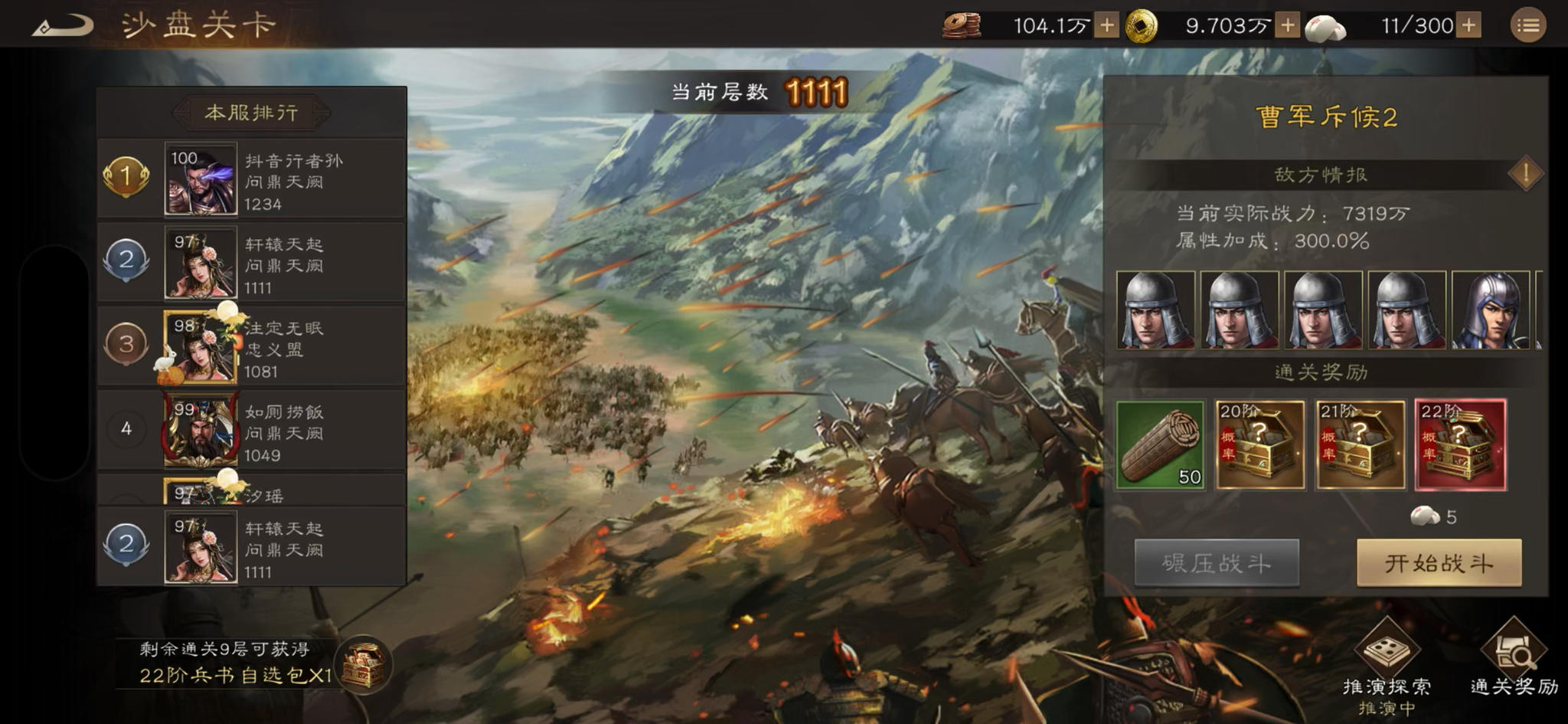 #新三国志曹操传创作者征集令 满配吕布,14星诸葛(2星神兵),三个辅助或者二个辅助加个输出。 基本无压力。