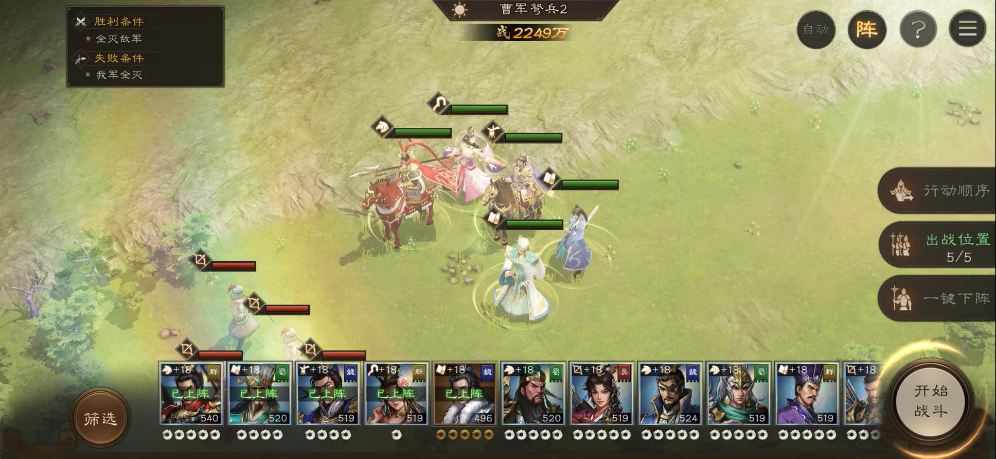 #新三国志曹操传创作者征集令 好久没这么舒服了[表情_捂脸哭]除了自动的步兵,打其他兵种阵容推荐:吕布貂蝉必上(一回合恐惧),孙权增加坦度,另外两个看你有什么,推荐郭嘉(减速)李儒(异常加毒)小乔(增加坦度回血)周瑜(真伤地形燃烧)庞统(聚怪,尽多可能让吕布恐惧一片) 打弓兵和弓骑属于最难,尽量在第一回合吕布恐惧之后,用郭嘉减速后排弓兵,然后我方全员后退,等第二波技能cd,这是最稳的打法 打枪兵骑