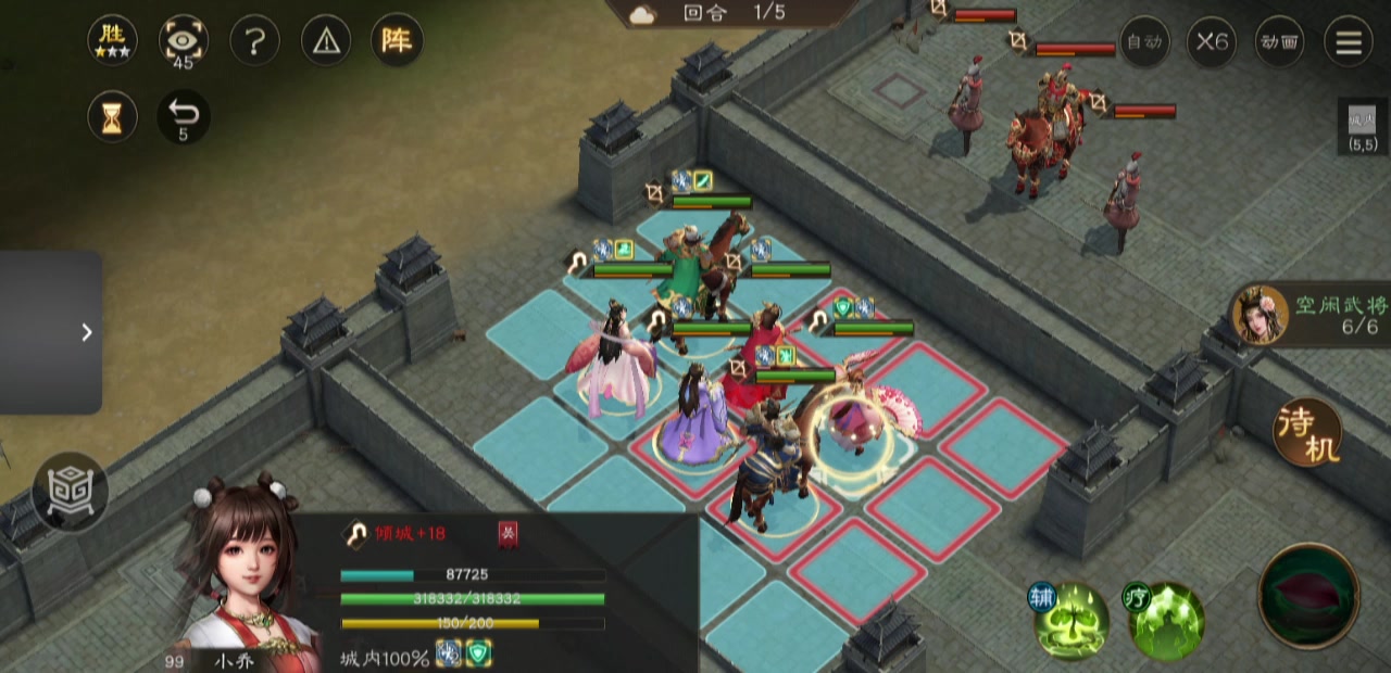 这关有甄姬小乔的一定要上,特别是甄姬,套个盾做到满血过关这点就不需要花心思了,上几个戴好装备的弓手,我的弓手练度都不高,夏侯渊黄忠这种基本被淘汰的普通橙将都没啥好装备,以前他俩的经验都给无双品质的分解了,普通武将的强度远远比不上稀有的,我全部武将里能达到稀有品质的只有孙尚香了,还只有蛐蛐1星神兵的香香,打这关可以充当核心输出主力了,一个人可以反击一侧全部敌军。 另一侧就用夏侯渊黄忠抵挡一阵,毕竟