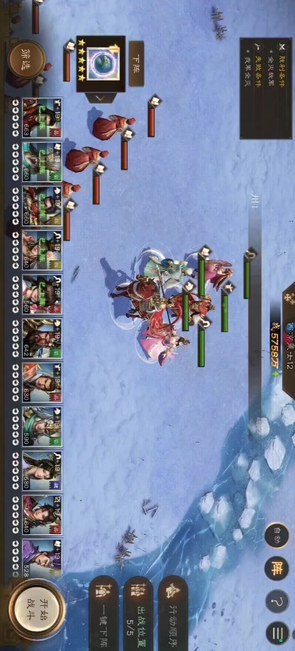 出战人物:诸葛(木日,火日,木火),曹操,刘备(神兵5),徐庶,荀彧,袁术,庞统,法正,周瑜,郭嘉。 全上挂件加属性,刘备没神兵的话建议不要硬吃,曹操上个状态再吹,记得走到草里。 #新三国志曹操传创作者激励