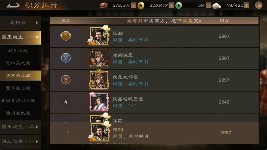 出战人物: 诸葛(木日,火日,木火),曹操,刘备,徐庶,荀彧,关羽,庞统。 录视频超了我原本分数,发现了个2.5动~ #新三国志曹操传创作者激励