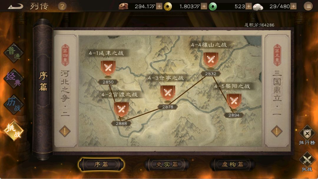 新的无双挑战400分还是有点难度的。本人14星5专甘宁,养成属性除了前面的基础属性没有点满,后面的都点满了。因更新调整无双挑战难度,除了自爆那个增益不选,再增加一个治疗减40。具体过关思路利用甘宁每回合反击上面的回血武将,保证4回合内将曹操,荀攸,乐进依次消灭,然后再将传令兵拉过来消灭,后面剩余的回合依靠许褚,甘宁反击和周瑜大招清理掉刷新的敌军即可完成。搭配武将曹操,孙权,小乔,周瑜(配再动马)