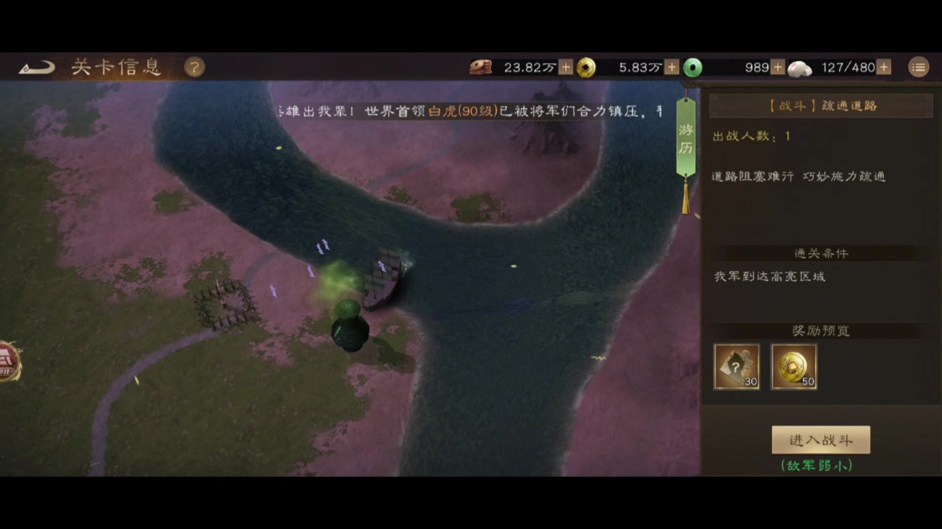 #新三国志曹操传创作者激励 游历事件-传播谣言二 通关要点: 1.百姓和百姓相邻,即为传播谣言成功 2.通关条件为全部传播成功 3.利用好一传二,二传四的分裂效应,每个百姓充分利用上 4.初始下方位置的派两个近处的去传,其他的网上走,四散开来,最终回合即可达成