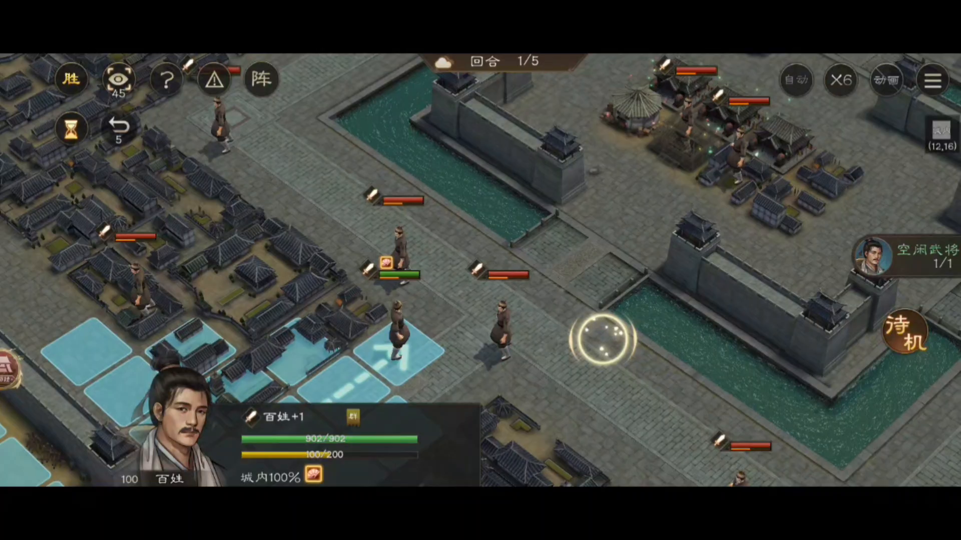 #新三国志曹操传创作者激励 通关要点: 瓶子可以推走,小技能推1格,大技能推两格;瓶子还可以被打碎,会释放毒气使百姓中毒。 第一步,先向前推一格 第二步,打碎右中的瓶子 第三步,右上的瓶子推两格 第四步,走到目标点过关