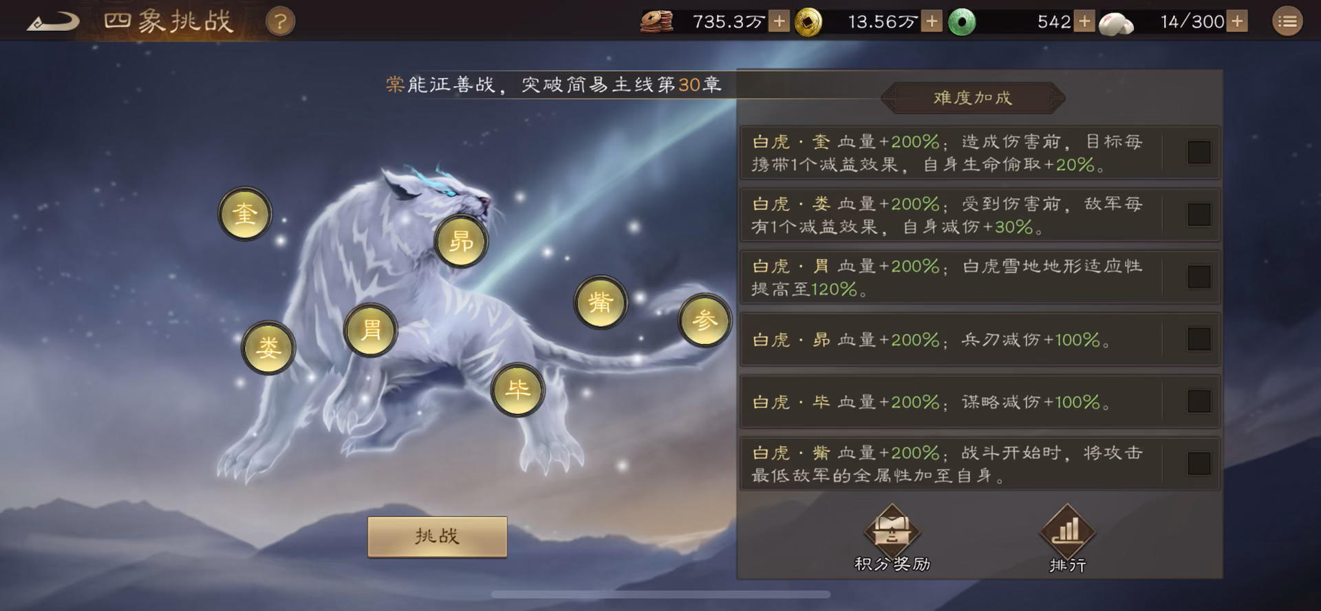 #新三国志曹操传创作者征集令 主要要点: buff方面,除了第四和第七个全选。 白虎吃连击,受攻击次数越多增伤越高。本视频上阵了大小夏侯、吕布貂蝉,14星吕布做为核心输出。 开局全员有3个debuff,需要解掉,不然boss会有90%减伤,上一个荀攸解debuff。 荀攸把所有装备扒掉,用一个水月星符增加清debuff,兵法只用一个群疗给个最低级的兵书,这样boss的属性加成最小。
