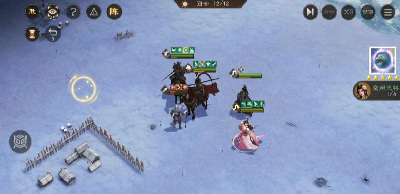 第一回合小技能推门口左侧罐子。 第二回合平砍左下罐子,罐子是能砍碎的,就是会被上毒,砍碎一个问题不大,砍多了就会被毒死。 第三回合大招推门口阻挡的罐子。 第四回合跑到终点光亮过关。 实际上一共也只有四回合,没啥花里胡哨,应该没有三回合通关的方式,没有一回合是多余的,最多就是左侧过关和右侧过关的区别,不管哪个方向,能四回合紧凑过关就行了。 #新三国志曹操传创作者激励