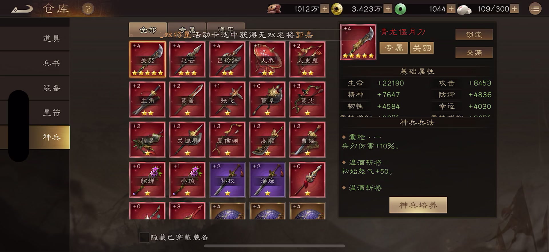 终于迎来了第二次无双活动,直接梭哈,欧气不佳啊好多接近于保底… 不同的氪度选择优先级是不一样的,吕布听着名号一般都会觉得优先级最高,实际是有前提的,首先一个完全体吕布确实很猛,但是也非常吃资源,要满星+4星神兵才好用,而貂蝉作为最佳辅助,10星就已经很好用了,所以先搞吕布得怎么也的是万氪以上更好些,以下的无脑先选貂蝉更好用,后面在慢慢补吕布,要不上来整吕布一瓶子不满,半瓶子晃荡也基本没有稀有主力骑