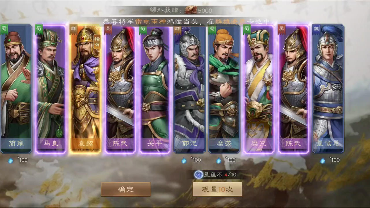 #新三国志曹操传创作者征集 最后30抽 已经抽干 出了一个赵云 一个袁绍 连续2个稀有 惊呆了小伙伴 这运气可以不? 希望所有曹友都有这样的手气 稀有出个不停 都出自己喜爱的武将