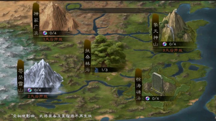 #发现好游戏 #战棋游戏 #找点游戏 #新三国志曹操传 #新三国志曹操传创作者征集令 #新三国志曹操传攻略测评 #浅评一下 神兽秘境是日常获取神兽的地方,在秘境里武将的装备和星符不再生效,因此外部养成不会再占太大比重,秘境一共有5个挑战本,中间的扶桑林每天开放,挑战成功可以获得祭坛和随机神兽而周围4个秘境则是按顺序每天开放一个,同时每个副本都有不同的机制,类似阵营塔上阵同阵营武将可以获得特殊