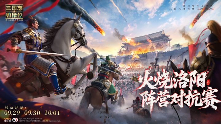光荣特库摩游戏《三国志曹操传》正版授权策略玩家头号之选——《新三国志曹操传》国战S2赛季「火烧洛阳」全面开启英雄们注意啦!这次《新三曹》国战排面拉满,制作组直接请来两位 SLG 重量级嘉宾——【喵利休】和【战争游戏研究所】助战问鼎洛阳,深度拆解【问鼎之夜 · 阵营对抗赛】,记得 9 月 29 日晚7:30,上 B 站搜【喵利休】和【战争游戏研究所】,带大家沉浸式体验国战巅峰~要是主播押中的