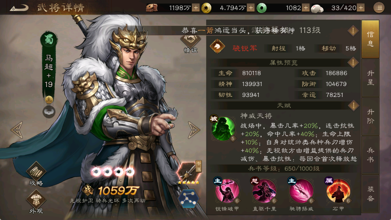 配置要求: 1.貂蝉要带+1马 2.貂蝉要有27兵书给再动技能 开局曹操+1移动,马超正好能够到第一个boss。 貂蝉有+1马和曹操的加持下正好能再动到马超。 马超的移动力大招正好覆盖到右下角的boss,一切都是刚刚好,3星到手!