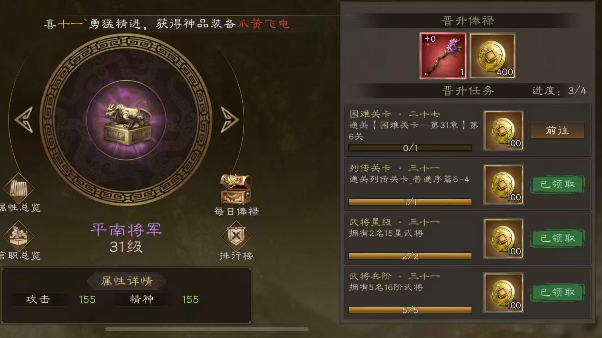 #新三国志曹操传创作者征集令 第一回合一定要把前面两排兵秒了 夏侯惇才会走出来 陈宫被动叠起来 反击平A伤害也挺高的 陈宫可以用其他法师代替 中间回退了一次 为了拿成就 冷知识 升官可以直接打31-6 前面的不需要过 还有一星通关也能升官