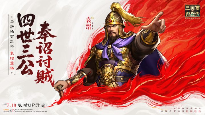 「四世三公,奉诏讨贼」全新稀有武将「袁绍」登场!7月18日限时UP开启!#新三国志曹操传 #曹操传新武将上线