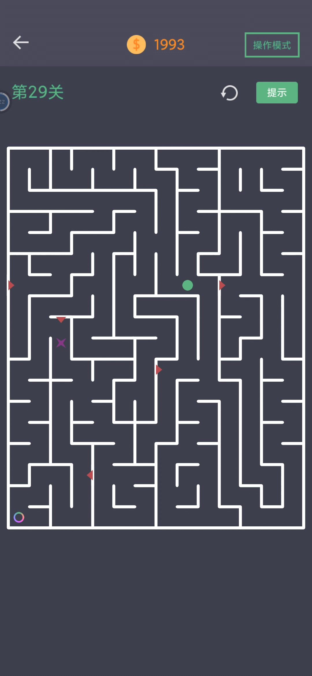 据说这游戏需要刷金币才能通关 经常出现的迷惑行为是操作失误和记错路线 每关刚开始的迷惑行为是为了显示找路线的思路,虽然导致手指严重遮挡视野(回头看才发现很难看出我想表达什么) 99关翻车原因是手指遮挡,也有烦躁的原因(后面连续思考几十关没停),肯定必然绝对完全没有一丝丝可能是因为我菜(狗头保命),然后后面是正向边推变走直接过的 迷宫基本思路: 1.别急着走,先脑子里规划路线,因为你操作速度比直接观察路线速度会慢非常多 2.简单关卡正向逆向能直接找出路线,复杂关卡正向和逆向两条路线在多岔路相遇就能迅速确定该走多岔路的那条路线 3.因为路线不交叉,所以利用一些比较明显的比较大范围的死路/死区可以主动绕开来迅速定位正确路线或者屏蔽掉一大块无用路线,经典最后十几关因为不交叉原因同时为了路线复杂经常出现故意绕外圈的设计