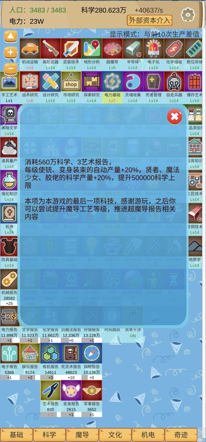 魔光炉这里写的是消耗超魔导报告,升完发现没消耗,结果一看艺术报告-5了,再升一级-7了