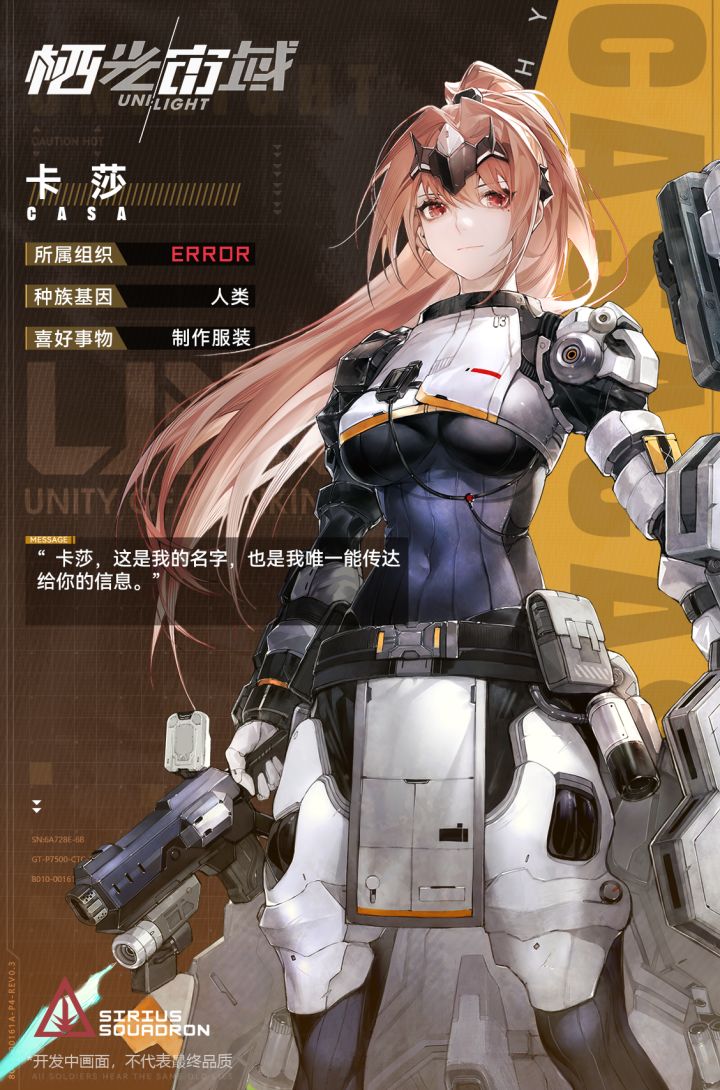 #栖光宙域#【角色介绍】卡莎“卡莎,这是我的名字,也是我唯一能传达给你的信息。”<>实力超群,曾参与过数场U.M.军方的大型战役,也因为卡莎在战争中展现的出色领导力被军方相中,在海鸥计划初期被任命为武器测试小队“回声”的队长。但如今却因为一些事由脱离军队单独行动。<>表面上是温和可人的大姐姐,除了能把自己的分内之事完成之外还时常给队员提供帮助,特别是对队伍中的女队员照顾有加。在涉及原则的大事上,作为队长的卡莎会理智判断,绝不会因为私情偏心。官方玩家群:665120384