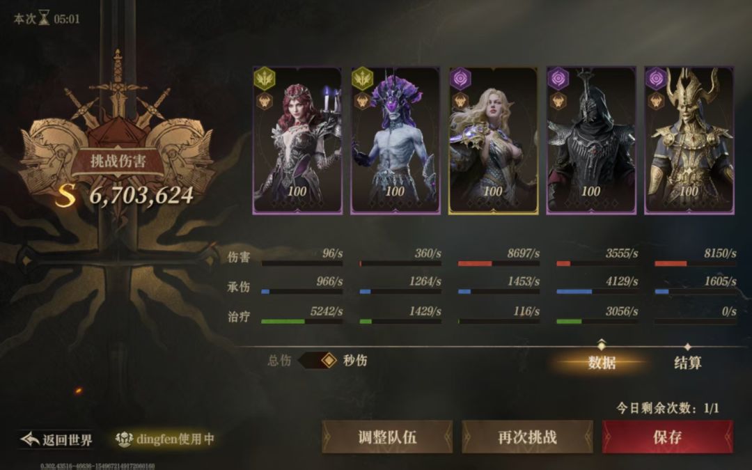 #龙息神寂 #龙息神寂攻略 这阵容很平民了,估计大部分人都应该有了。 重点:泰雅的技能急速尽量在35以上,效果命中300左右,主要是禁疗。我的这个数值比较低,有风险续不上buff 其次,她的装备带挨打套。就我图片里面的装备就行了 其他没有什么特别的,装备和数值抄就行了。就是注意把效果命中给拉瓦和冰女堆一下 然后冰老头攻击暴击爆伤拉起来。 没有设置时间技能轴,自动释放就行了 要是想追求更高的伤害就
