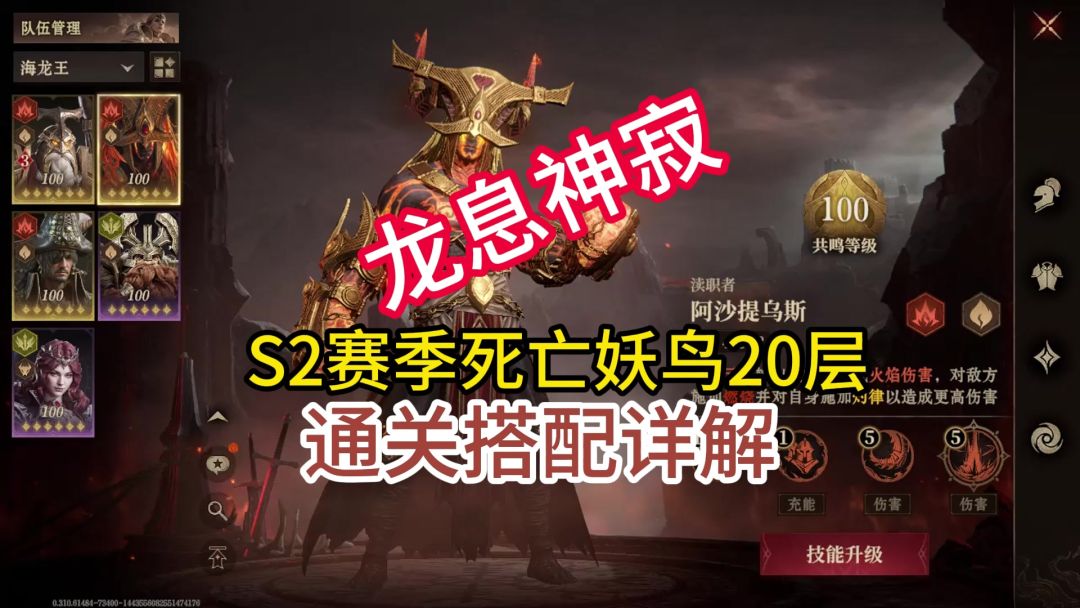 #龙息神寂攻略 顶配就是这个阵容,直接照抄就行了。 装备方面的话给黑龙上个山脉回音装备(吸血) 再上个月华之光(免死) 其他装备要求的话,看看我装备的数值就行了。没什么硬性要求 技能时间自动释放就行了,没有要求。就叹息王带点急速,释放技能比黑龙早就行了 没有普莱查,黑龙,叹息王的。图片最后三位也能用做下位替代品 后面再给大家搞个冰队的队伍 其他什么问题可以留言,看到了就会回复。