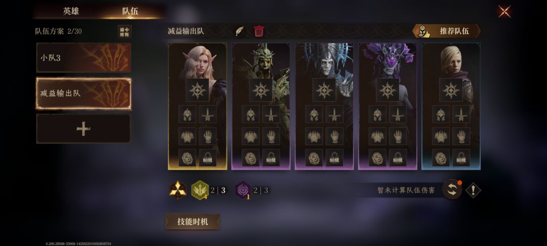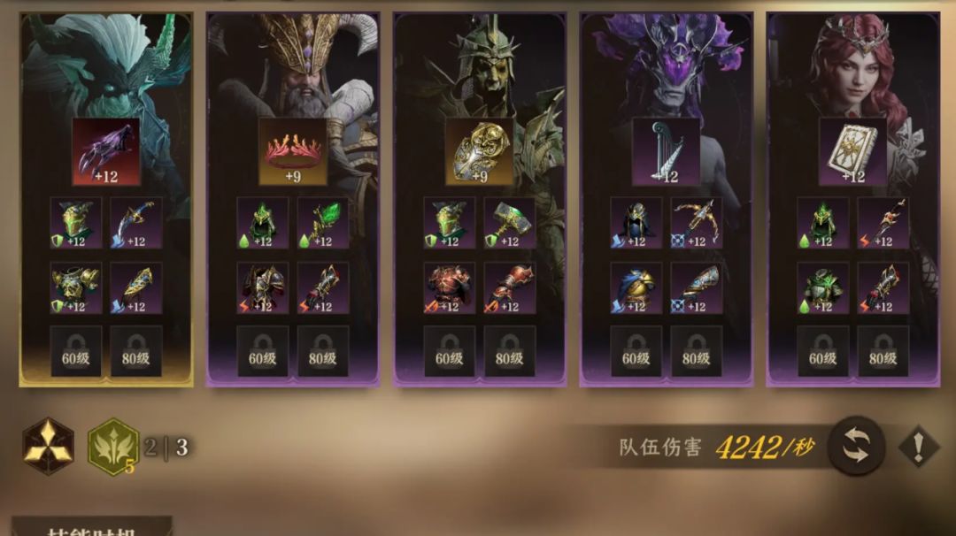 配队 思路:科斯、以莱娅出召唤物给黑龙吃,尽快变身 黑龙:核,主力输出 叹息王:主T副输出 梅甘:奶 科斯、以莱娅:养料输出,buff机 技能 黑龙、叹息王:我是满的,1级可试 梅甘、科斯、以莱娅:满 天赋 黑龙、叹息王:第二行; 梅甘、科斯、以莱娅:第三行(有石头的可以加满,没有也行,死不了) 配装 黑龙(核):重击装(手套&正符文-重伤、衣服-攻击%,附属优先重击率、重伤、攻击%) 叹息王(主