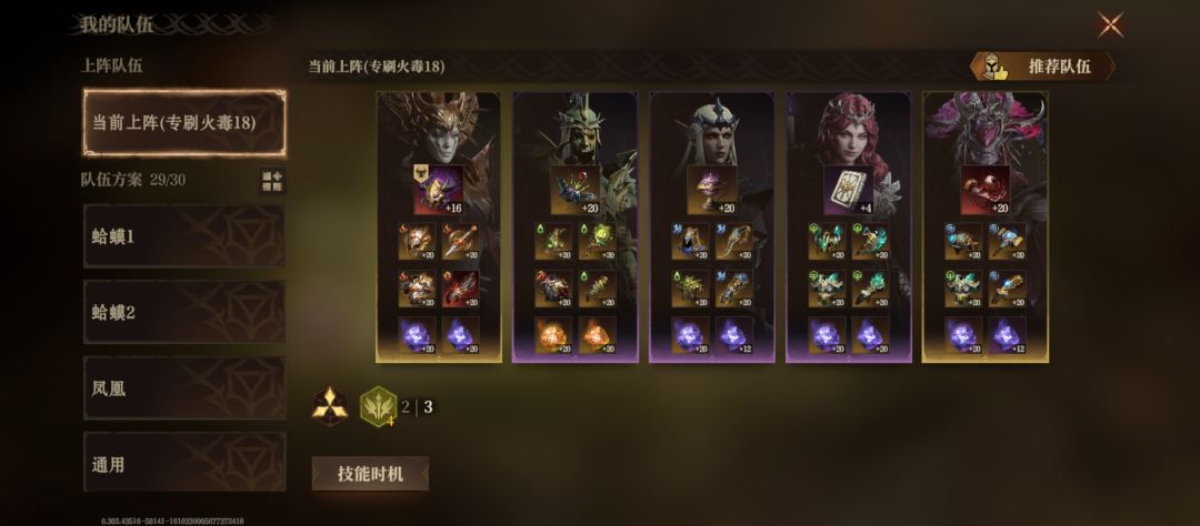 阵容如下 前两张卡是输出卡,大家可以根据自己情况自由选择,主要是后边三张卡,有了后边三张卡才容易通关 蓝卡要堆效果命中,刚才首通符文9时忘了堆,只有194效果命中,最后一次没有给凤凰上到减攻击debuff,差点团灭,不过好在还是顺利通关 忘堆命中原因是刚才在打蛤蟆,打蛤蟆阵容不需要命中,如果带上下边这件装备就稳了 站位和打法如下边视频 就是卡时间节点释放蓝卡减攻击debuff大招、紫卡群体免疫减益