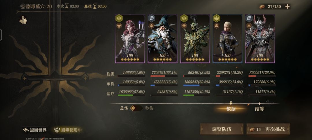 应该算是比较低配的了,红神器只要女巫的残留物,其他人的神器都可以换,有红的肯定更快。 诅咒墓穴20的效果命中要超过300,尽量用装备凑300,关卡效果用光枪的加18%防御。 光枪防御刚需3500以上,越高越好,不然一秒都站不住,红色装备带个名刀,其他三件凑个蓝橡树之辉套装效果。 老头没啥好说的,堆伤害就行。 然后是天赋,天赋最好拉满,我是天赋拉满才打的,不知道没拉满打不打的过。 老头天赋点上面那条
