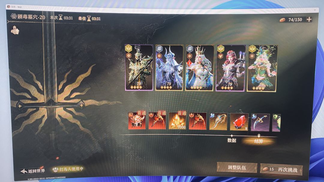 记录一下,图片证明,后续有通关思路,只限于光炮!!![表情_吃瓜] 接下来分享我的通关思路,我神器比较全,沙漏和女巫残留物比较刚需 金卡:鹿诗炮 紫卡:光枪、光球(迷宫送的)、真理、幽光; 常驻阵容为:鹿诗炮+光枪+光球,其他角色在不同情况下替换。 装备搭配: 光枪:2+2+守门者(最好有免死,我没有用免死,有容错); 小鹿:带魔偶师套装+沙漏,定位是提速和替死鬼; 诗人:带神圣猎者套(一般装备