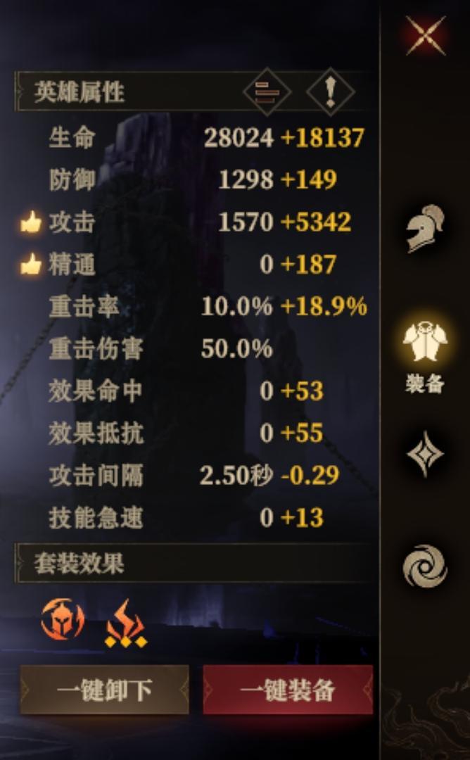 龙息的人物装备一共有6个位置。 分别对应头盔,武器,盔甲,手套,正负符文。六个位置。 其中头盔和武器的主属性都是固定的。 头盔固定加生命值,武器固定加攻击力。 盔甲的主属性有:效果命中,效果抵抗,精通,攻击百分比,防御百分比,攻击力,防御力,生命百分比,生命。其中生命百分比,生命,防御,攻击力都是拿去卖钱的货色。加的数值很少,其他的几种还有用,都留着。如果主属性出现了,就不会出现在副属性上。 一般