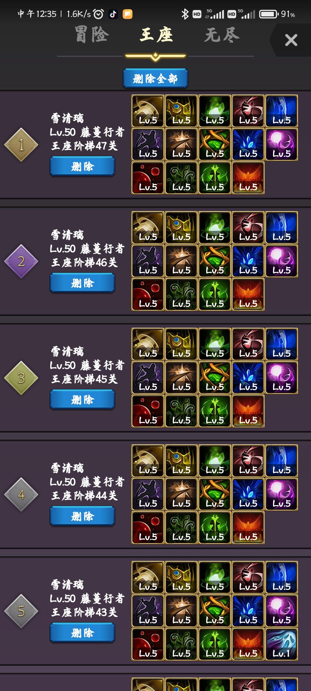 神圣五法球(低资源高效率爬王座,已调整,暗王座不建议使用)