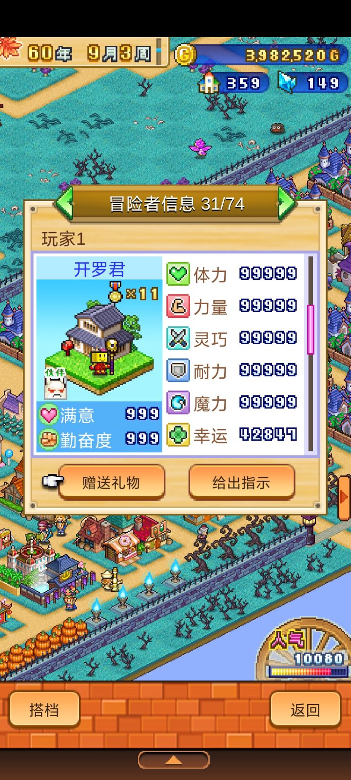 但是对比于其他开罗游戏,这个可以说是太麻烦了,要毕业得拖很久,而且需要点击数很多,一直需要点点点,人气+100点几次,居民来了点几次等等而且还不能加速,总的流程打完一共60年,对比其他开罗来说长了两三倍时间。