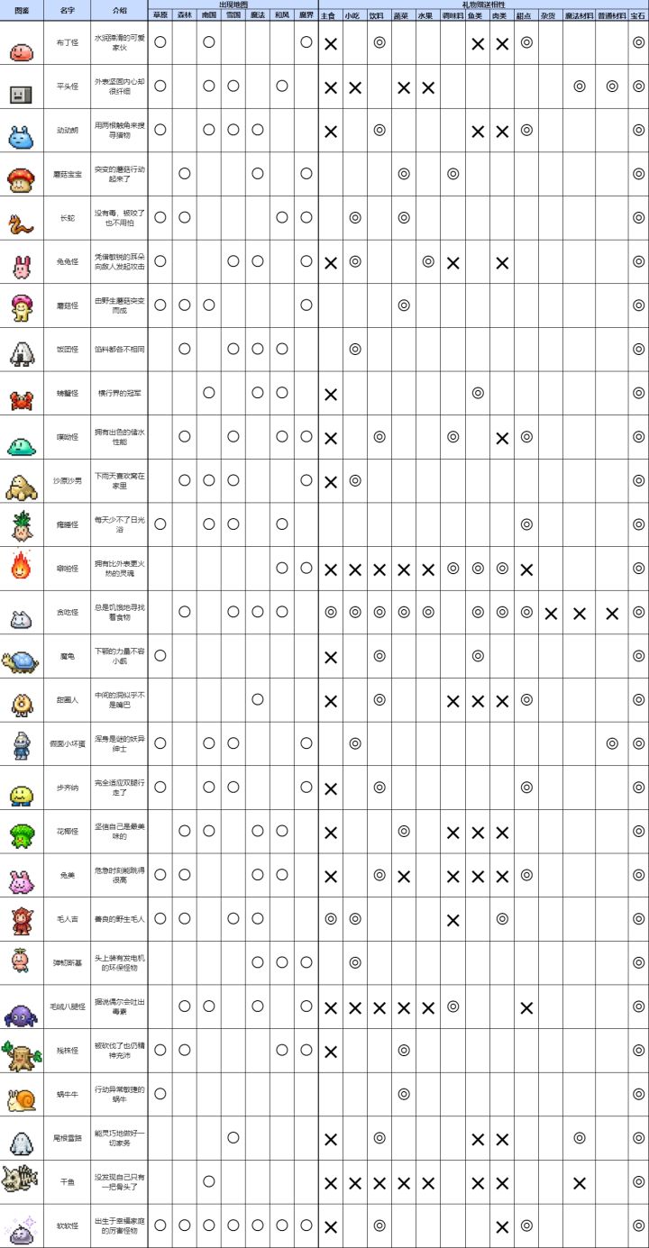 《冒险村物语2》怪物图鉴:怪物出现地图、礼物赠送相性