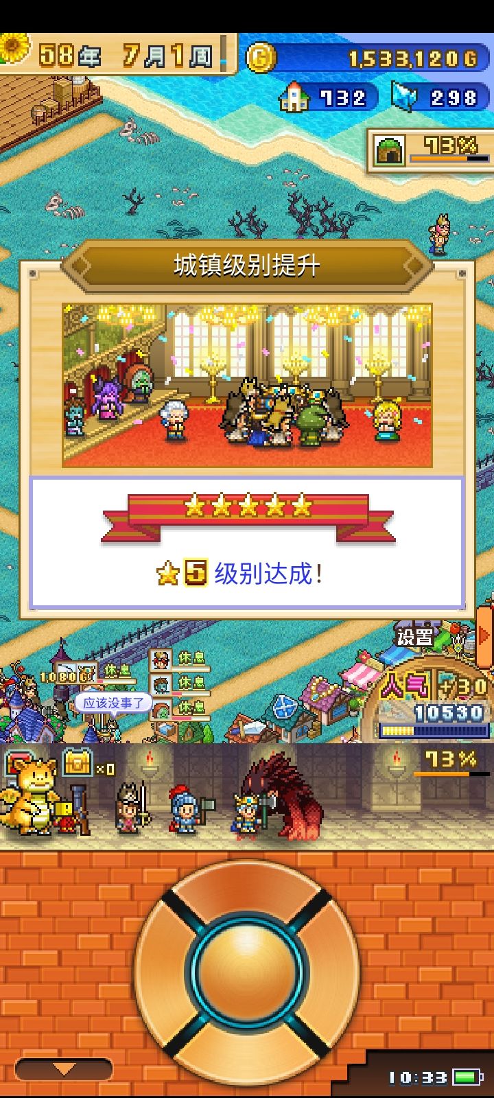游戏核心:①金钱②战力1.关于金钱:到一个新图,只建造旅馆、防具店、饰品店和武器店,慢慢资金充足了,再建造其他价格高的商店。⭐(重点):记得强化商店,如图点开建筑→使用道具,一般用气球提高价格,各种花朵提高品质和魅力(提高购买频率)。2.关于战力:最强的是开罗(10勋章转),最常用的是勇者(5勋章转),大魔法师和皇家护卫也很实用(只需要2/3勋章)。⭐(重点)提升战力有两种途径:①和强化商